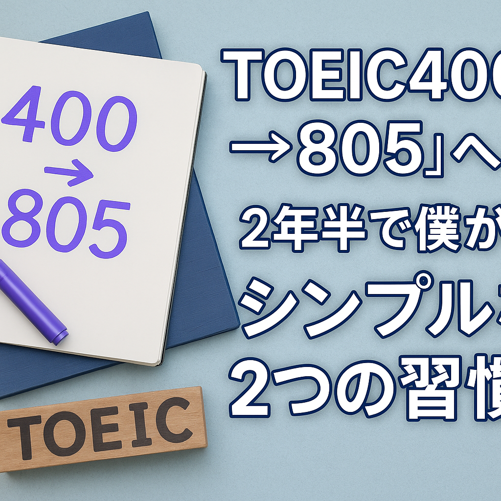 私は、TOEICスコア400から805を達成するまでに約2年半かかりました。